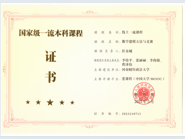 2023年国家级一流课程证书